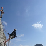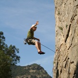 Descent: 1) Rappel down the route, 2) rappel down "Ebola" 6b that was originally only an abseil line, or 3) walk down the other side of the cliff. 🗺 See map for the GPS trail, as the path might not be that obvious.