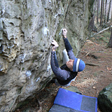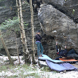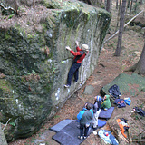 Chill spot for families and crews of all levels – from mellow warm-ups to proper battles. Most problems have friendly landings, and the whole area is tucked in a spruce forest, so there’s always some shady spot to hang out or catch a nap between goes. The densest cluster of problems is around the legendary Fuck Wand and the Familien Blöcke – prime zones if you’re looking to tick a bunch in a session.