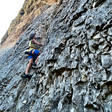 Climbing is generally quite technical in the first half of the wall, then more athletic on the steeper upper section of rock.