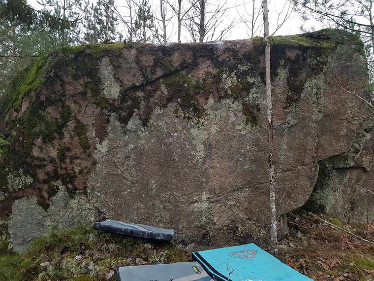 Jump start from the stone on the ground and then mantle.