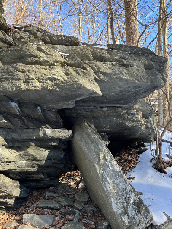 Sit-start in the cave on obvious jug. Reach up directly overhead, work your way to the right. Reach out for the lip, then use only the lower and leading edge of the rim and move to crimps and jugs on the face. Power your way over the top to finish. Large vertical slab underneath is off.
