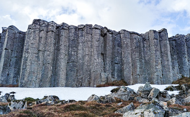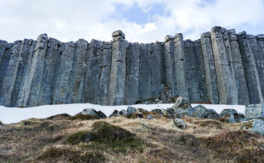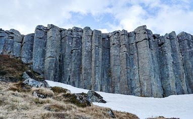 Following road 54 to Snæfellsnes from the south and towards Hnappadalur, you then turn onto a gravel road towards Ytri-Rauðamelur. After following that road for about 5 minutes the cliffs appear on the left side and there two parking spaces can be used on the east side of the road. It is typically better to park at the second one since it is straight below sector D. People are kindly asked not to park along the offroad path on the west side of the road and to follow clear walking paths when hiking up to the cliffs.