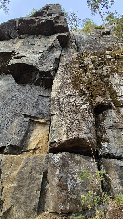 Same start as Jippohäst. Halfway up turn left to the arete. 3 bolts. 20m.