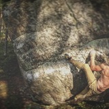 Två stora block i öppen tallskog med kort approach. Barnvänligt. Bitvis rostfärgad sten och en del vassa grepp.