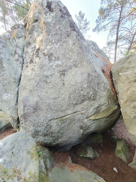 Sit start in "cave" with the ledge. Don't dab the boulders around