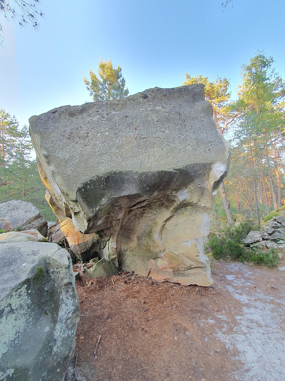 Sit start left hand on "arete"/good hold. Make a low traverse to the right and finish with Poison d'Avril.