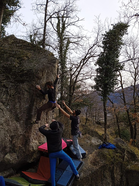 We are located in the lower Susa Valley, near the hamlet of Grangetta in Borgone Susa. The sector is situated on the south side of the valley, continuously exposed to the sun. Perfect for peaceful winter days but not recommended for climbing during hot days. In case of precipitation, the rocks dry very quickly. The rock is granitic gneiss with a characteristic very coarse and rough grain! The sector offers passages of all kinds: cracks, technical slabs, physical overhangs, and some traverses. Most of the blocks are relatively low, with safe landings and slight or pronounced slopes due to the terrain. There are currently around a hundred lines, but the number is always increasing due to the presence of many passages still to be cleared and rocks to be cleaned.