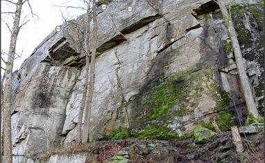 From the car park you should be able to spot the crag on the other side of the road (do not destroy any fences).