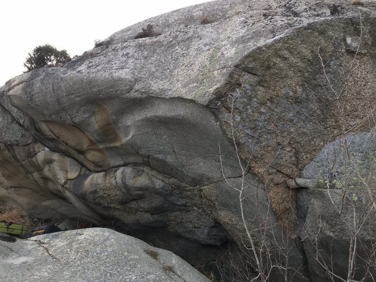 Start standing and follow the arête to the lip.