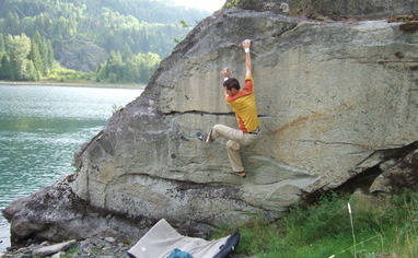 Great quality granite within minutes is Nelson BC. Access via faint trail located in the middle of the pullout, trends down and left to lake.