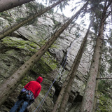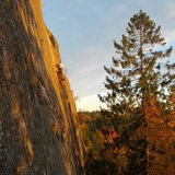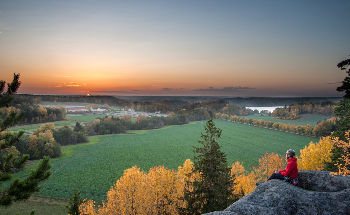 Thirty meters high and about a hundred fifty meters wide crag that houses some of Stockholm's best and longest trad climbing routes. The wall is just below 90 degrees so it is important to mobilize the footwork in the best possible way. Two sets of nuts (perhaps unnecessary to double the largest) and a few small to medium-sized cams are usually enough for most routes. Note that this is only a general recommendation as there are exceptions, some cracks swallow lots of small wires, for example. In order to maintain a good relationship with landowners and residents in the area, the approach to the crag takes place from above, although It's very easy to get down to the base of the crag via a steep trail/path and some big ledges (you can activate this trail in the app, making it easier finding the steep trail down to the base of the crag).