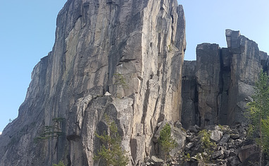 In order to reach popular routes Den sorte kamin and Babyface, you will have to do a short climb first, called Normalveien (grade 4-), followed by a scramble. To find the start of Normalveien, walk down and along the front of the north face of Gamla. Around the corner you will arrive at the start.