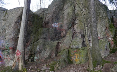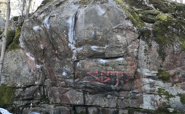 Cleaned the routes last summer. Apparently they have been climbed earlier and the topos can be found in the 2004 edition of Slouppi guidebook. Can't get a hold of the book so I renamed the problems. If you know the real name and grade, please put some info.