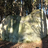 A beginner-friendly boulder that is easy to reach and good place to start your outdoor climbing journey. Boulder is located next to a path in a shady forest on the city lands.