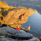 Overhengt vegg med sparsomme bøtter. Mange fine muligheter for dynamiske flytt. Ligger nært vannet så noen bulder er ikke tilgjengelig med mindre tidevannet er lavt. Mulig deep water solo ut på kanten ved høyt tidevann.