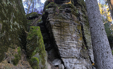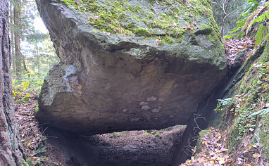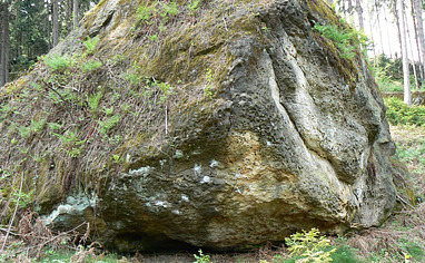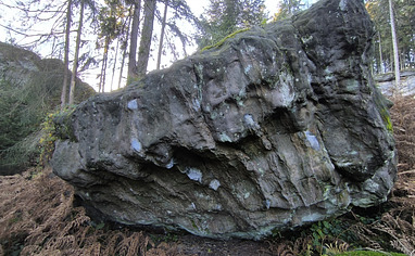 From the main parking lot, walk 100 m along the road in the direction to Bahra. Then take the uphill trail. At the first forest junction, the boulder Diamant will be right above you. The forest path leading left takes you to the lower part of the entire crag.