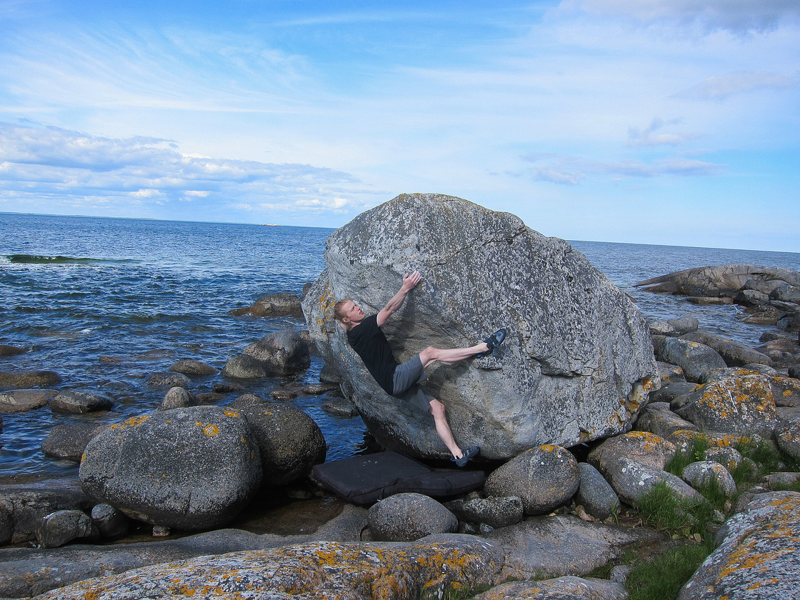 🧗♂️ Hanö is a small pittoresque island outside the north-east coast of Skåne, with plenty of boulders! This magical place is a perfect refuge during hot summer days when the forests in the mainland are filled with mosquitos and the rocks become close to unclimbable. The scenery here is stunning and the view of the ocean as well as a cooling breeze always present – enabling summer sends! Almost all boulders are of medium height (2-3m) with very good landings (well suited for children) and great, sometimes water-polished rock-quality. Several of the granite outcroppings are also steep with physical climbing on larger holds, most prominently "Drakens grotta". This is Hanö's most classic and problem-dense sector with athletic and powerful lines on the islands best stone!