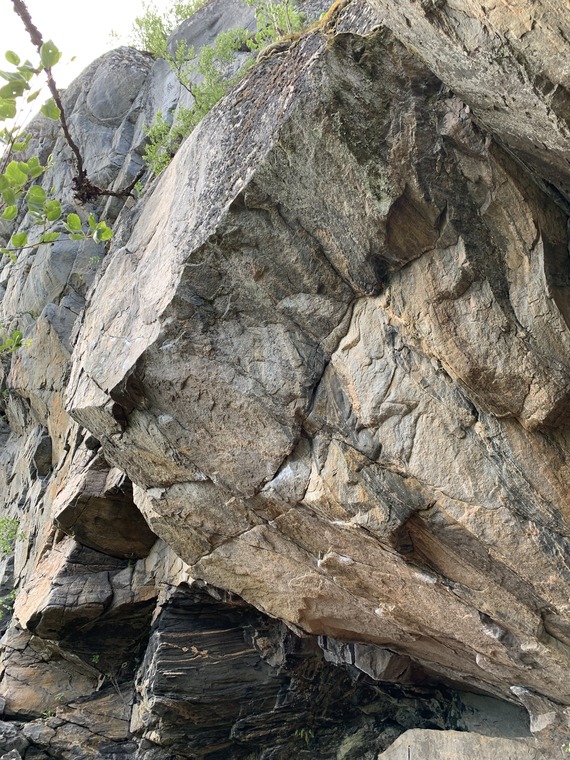 Start on the obvious horn. Perfect moves on edges through a clean 45 degree overhang. The crux is at the lip, at around 5 meter. The last meters are easy climbing, but a no fall zone.