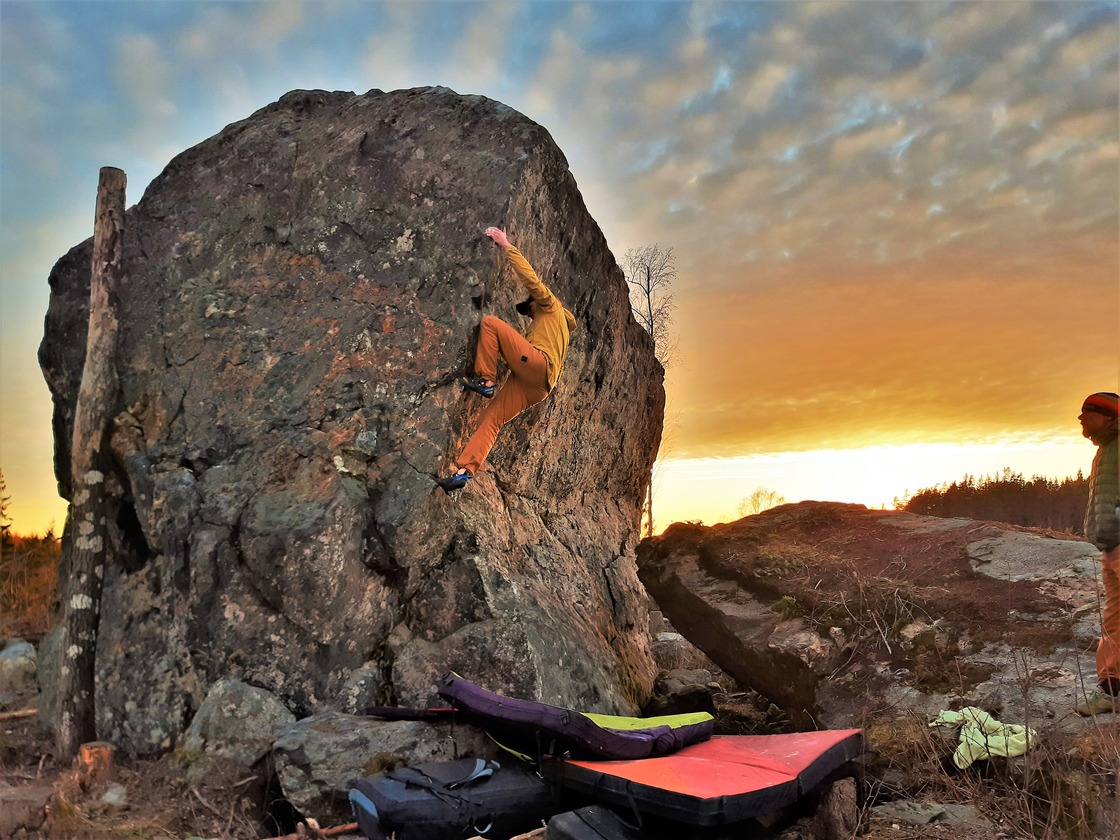 Hurmaajakivi, Lowball-Wall & Kapinakivi lie on top of a high hill that's been harvested a while ago. So the boulders dry very quickly after the rains. They are perfect choice for an early spring or late autumn sessions. In the early spring the small road to the parking might be snowy though, making the approach to the boulders rather long and heavy. This applies to Harjaskorpi -boulder as well. The view over Iittala from Hurmaajakivi/Kapinakivi is spectacular, as the boulders are on top of a harvested high hill.