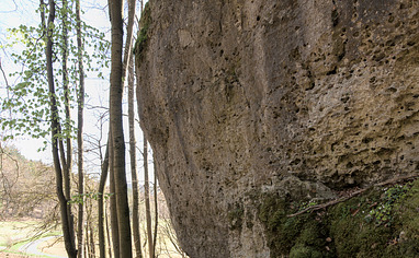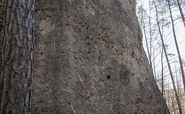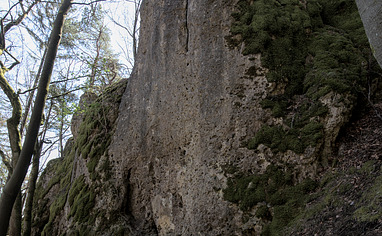 Go back the street towards "Rupprechtsdegen" for 120 meters and cross the river via the bridge. Turn left and follow the hiking trail for100 meters. The Crag is right to your right.