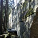 En vertikal väggsektion och utspridda block och klippor. Som regel skuggigt pga träden. Visa hänsyn till förbipasserande ...