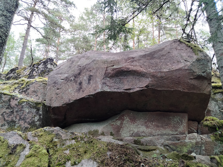 Ensamt problem som ligger uppe i slänten mellan huvudorådet och sector Drop knee. Sittstart på en hylla. Spotter anbefalles.