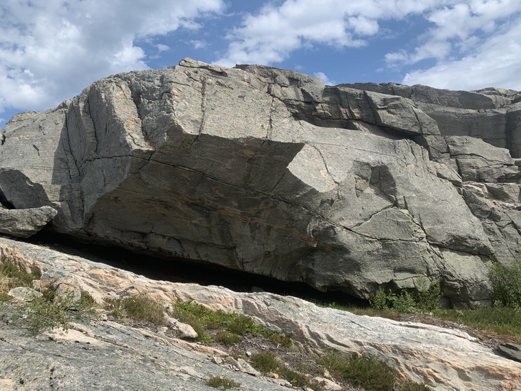 Sit start (not crouch). Climb up to the crack and lip, then traverse left, through the thin crack splitting the rock, then finish straight up. Morpho on finger size. Probably easier if you have small fingers