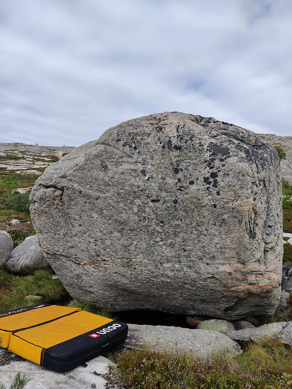 Boulder, 4+ (On the part of the rock that faces the road. Starts down left above the water. Picture to be added) on