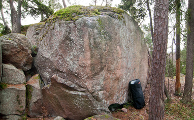 Easy access and nice neighbourhood offering good fun for a day or two. Unlocked potential for a few more problems I think. Some of the topo lines drawn here may be a bit off? Namely Kiva helppo, Ei niin kiva helppo and Luu ulkona.
