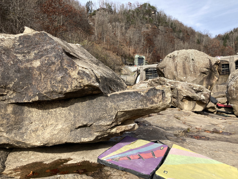 Wow. We saw some chalk on this thing. It is fabulous. I did it 3-4 different ways, including the Crocodile beta in font (except over the side instead of over the front since I haven't figured out how to get my toes out there yet). This may be my new favorite boulder problem ever. No idea who did it first, but if it was you and you want to rename it, let me know!