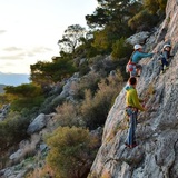 Heraion lake has two beautiful sectors with slabs and vertical limestone walls and easier routes graded from 5a-6c. All routes are equipped with Lappas glue in bolts and are perfect for beginners or recreational climbers who want to combine other lake activities with climbing.