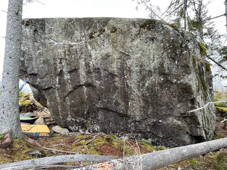 Gå med vänster hand till krimp långt upp till höger och sedan upp till hyllan via krimpar.