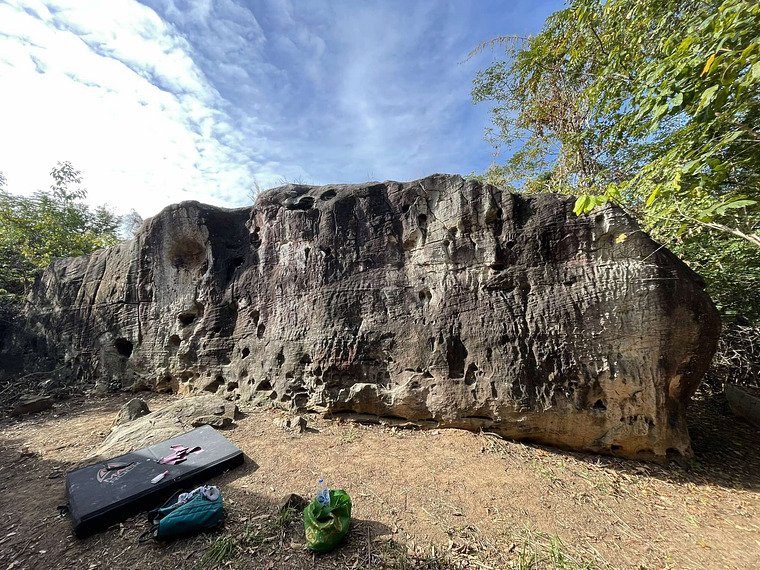 Easy lines on the white slab face. Many features.