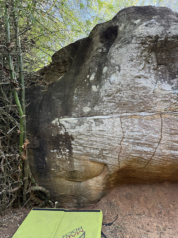 Start by placing your right foot on the tiny crimp near the termite hill, your left hand on the crimp above, and your right hand on the pinch crimp. pool for the right-hand crimp, pool up to the horizontal railing, pool up to the large hueco, and so on.