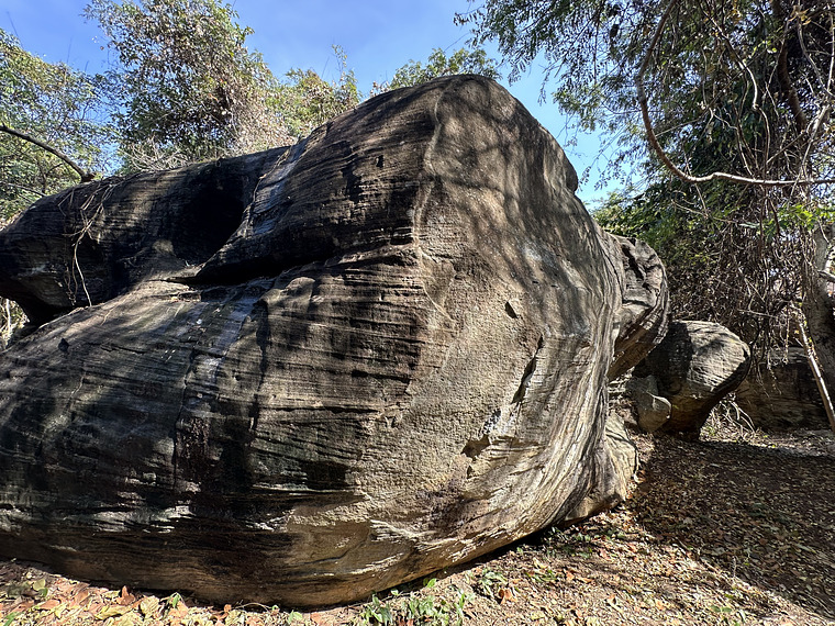 Sit start low on crimps, reach for a horizontal ledge, left foot on friction, and heel hook on the right diagonal ledge, mantle over and high reach to a small crimp to exit.
