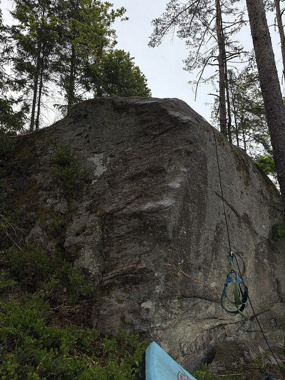 Nice slab to the left of the arête. The big block to the left is allowed to get into the wall. FA Santi Pagola