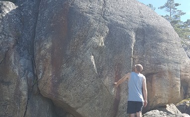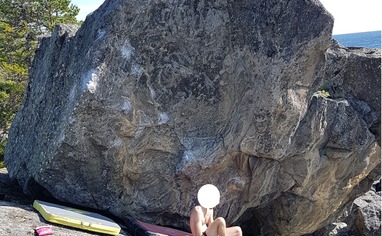 Perfekt sommarboulder, grym stenkvalitet och skugga större delen av dagen på facet. Utrymme för flertalet hårda superfina problem.