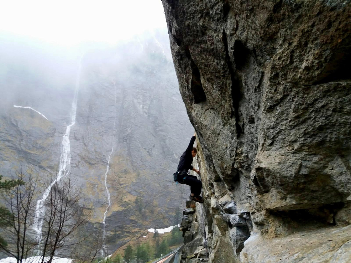 The climbing typically takes place on vertical or slightly overhanging gneiss walls with crimps and flat holds, interrupted here and there by more overhanging sections or small roofs, making it more physically demanding compared to most Ossola crags.
