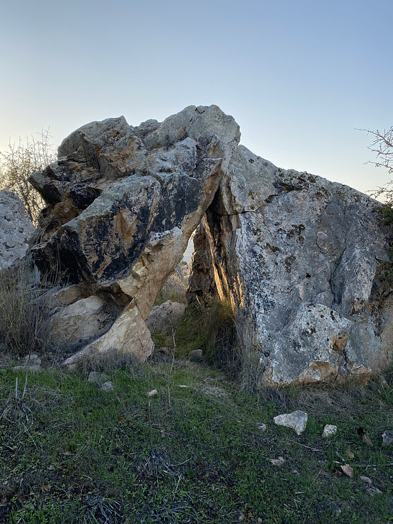 Start on the hand moulded hold and traverse left and top out (the opposite boulder is not in)