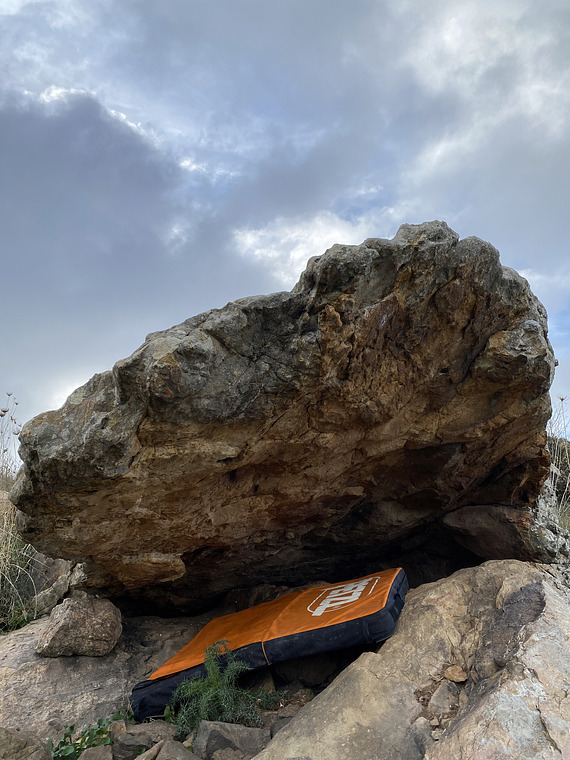 Sit start with LH on the pocket used for ‘Doubloons’ and RH in an undercut pocket to make your way over the lip