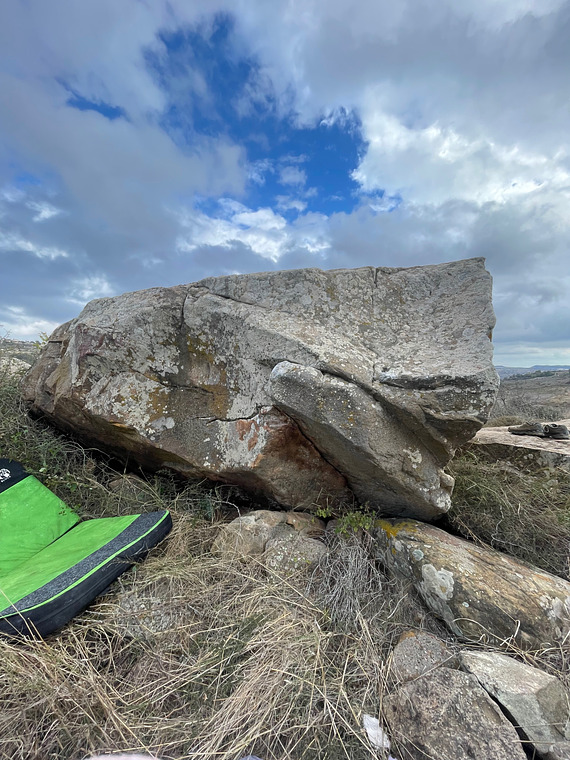 Sit start around the arete with a left hand on a slopey jug and get around the arete (careful not to dab) to finish same as "Ewok's Spear".