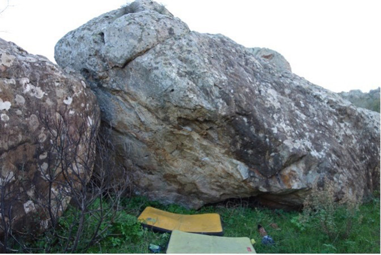 Sit-start to eventually gain the jug on the lip of the short overhang