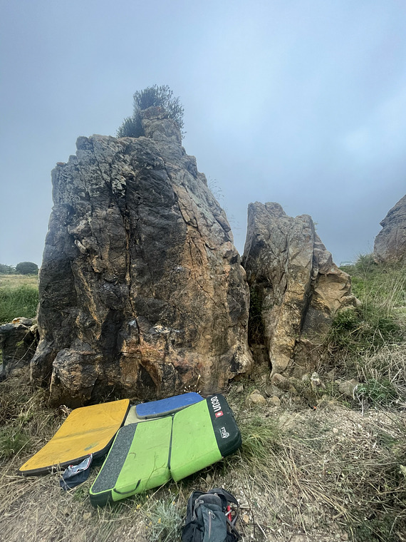 Climb the pillar shape, compressing your way up from a sit-start.