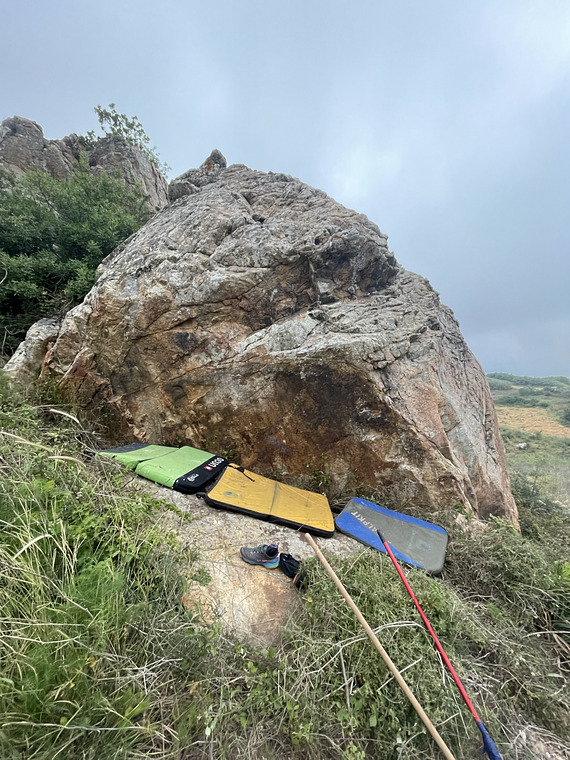 A mantle problem starting on a RH high undercling and a LH sloper to execute a mantle onto the slab.