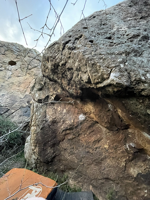 Start with a good LH jug and RH crimp to reach the lip and mantle on the slab.
