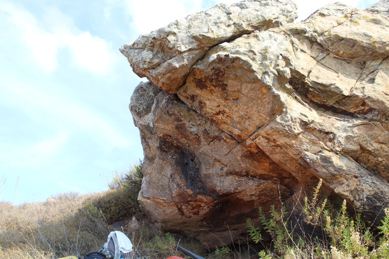 SS matched in the large undercut in the mini-roof then gain a good hold in the black streak out right, finishing up.