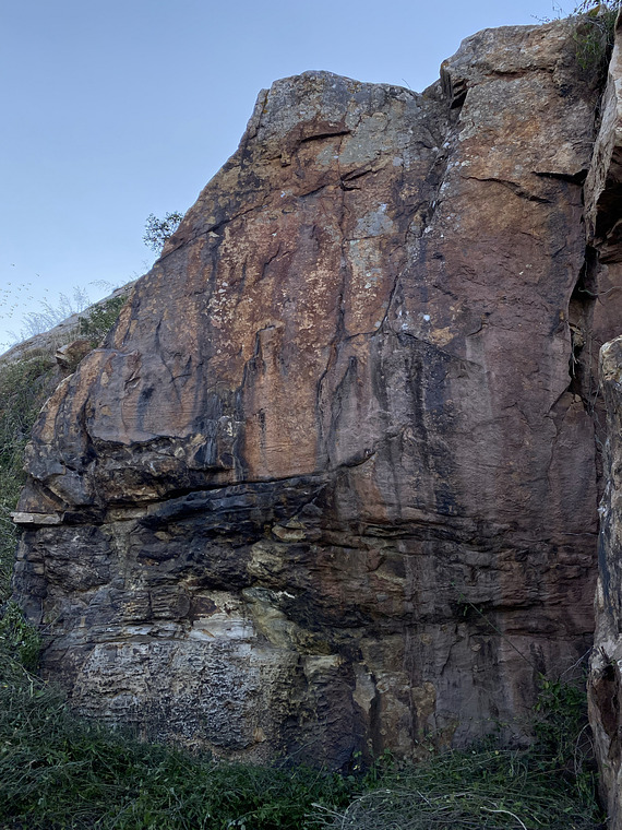 Stand start matched on the good hold just above head height and make a big move and some technical moves before finishing up the slab face