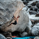 Secret climbing spot in the river gorge with spctacular view of mountain peaks
