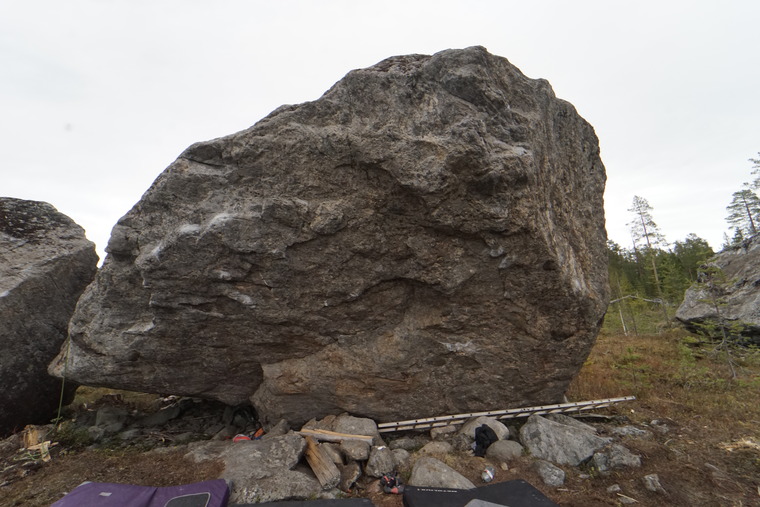 Jävligt tokig start och kroppstung. Sen ba vräka sig på Njutiga slopers med ett pang till avslut. Se till att toppa på rätt ställe. Mycket lättare mer till vänster. Ungefär samma känsla som när man bygger layherhäng med 3m spiror och strävar in 2m.