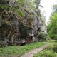 Kör in ca 70 meter på den lilla grusvägen och parkera vid porten